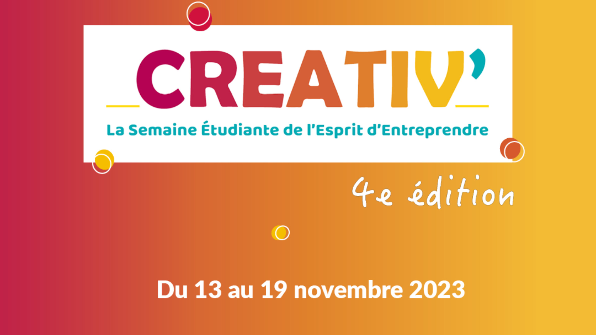 Née en 2020 sous l’impulsion du Ministère de l’Enseignement Supérieur et de la Recherche, la semaine CREATIV', ou la Semaine nationale de l’Esprit d’Entreprendre, sensibilise les étudiants à l’entrepreneuriat avec la coordination du réseau Pépite France. Rencontres et rendez-vous sont prévues dans de nombreux Campus.