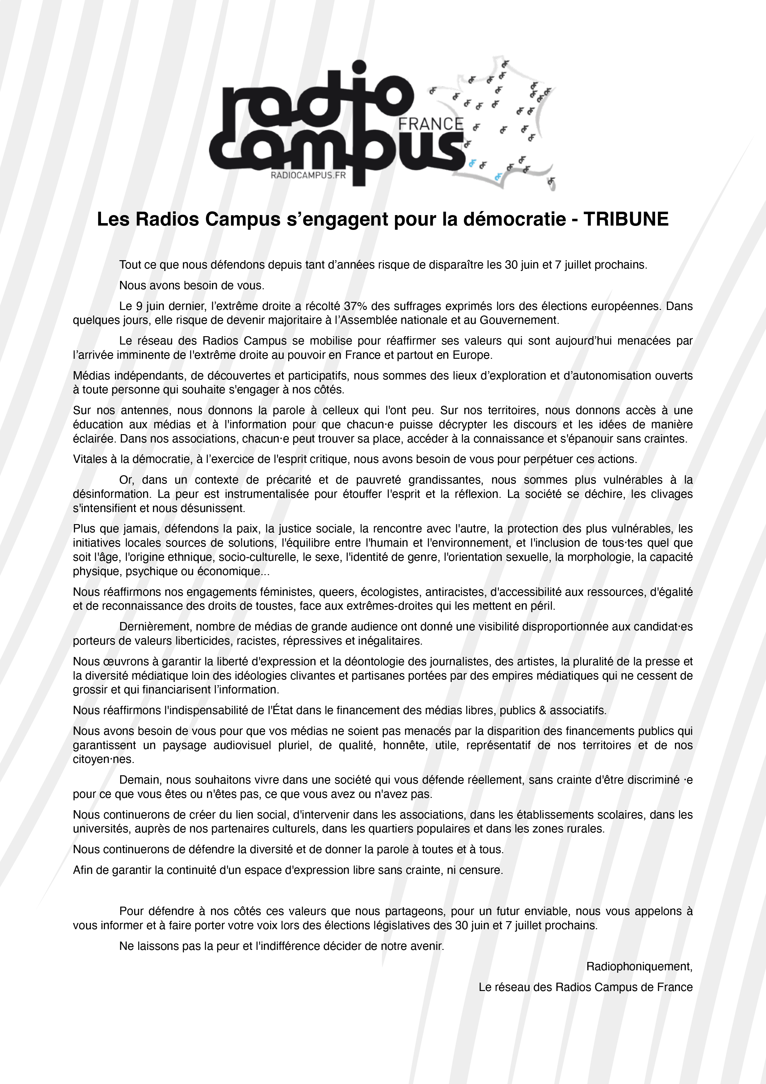 Tribune - Les Radios Campus s'engagent pour la démocratie